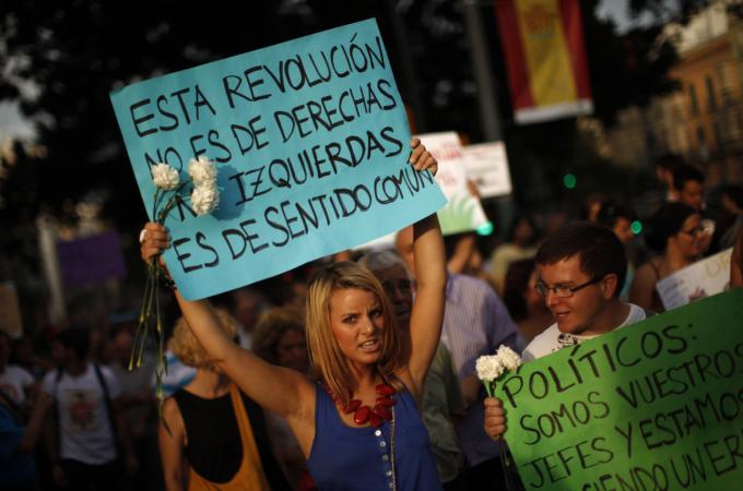 The movement, which became known as #spanishrevolution after the Twitter hashtag used to spread news, pictures and footage of the revolt, began with the online call for a May 15 protest to demand “Real Democracy Now!” The marchers were dubbed “indignados” [“The Indignant”].