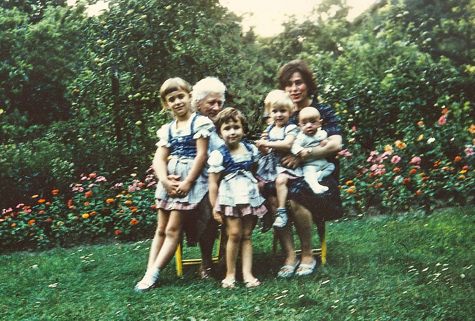 Growing up in the magical garden of my childhood. I am the one on the far left, leaning towards my grandmother, my mother holding my two smallest siblings, with my younger sister in the middle.